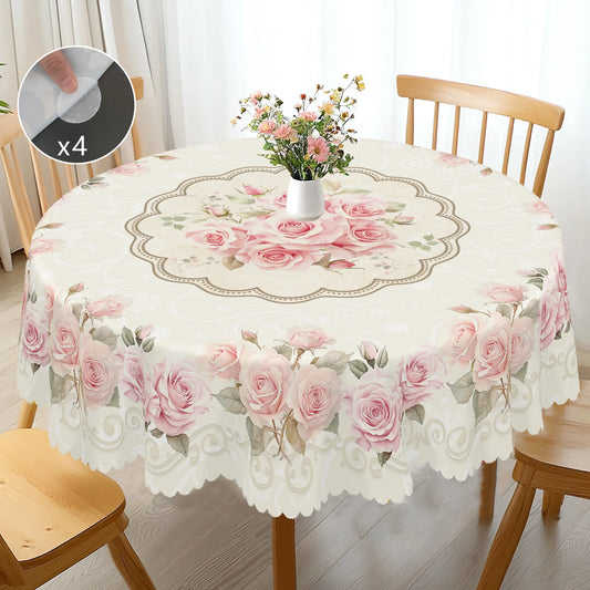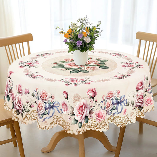 1 Piece Floral Round Tablecloth, 5 Sizes Available, Rose Flower Pattern Printed Tablecloth, Edge Embossing Process, Spring Garden Tablecloth Decoration, Tablecloth for Daily Home Kitchen, Terrace, Home Decoration, Spring Deco