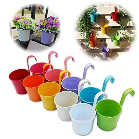 1/10PC Metal Flower Pots Vase Hanging Planter Basket With Drainage Hole Detachable Hook Balcony Fence Garden Home Decor