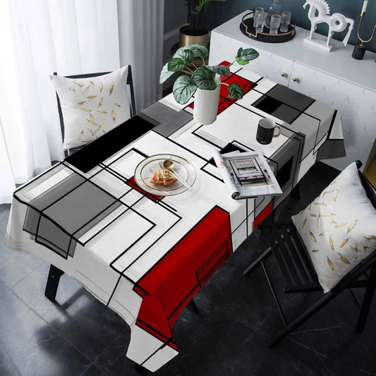 Black Grey White Color Block Rectangle Tablecloth Table Decor Reusable Waterproof Kitchen Dining Table Cloth Holiday Party Decor