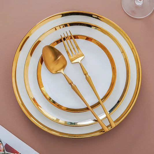 10-inches Ceramic Western Steak Plate European-style Gold Border Fruit Dessert Breakfast Dishes Circular Kitchen Plate Tableware