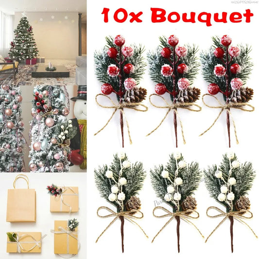 10/1pcs Christmas Decorations Festive&Party Supplies 10pcs Christmas Artificial Pine Branch Berry Flower Bouquet Pick Xmas Decor
