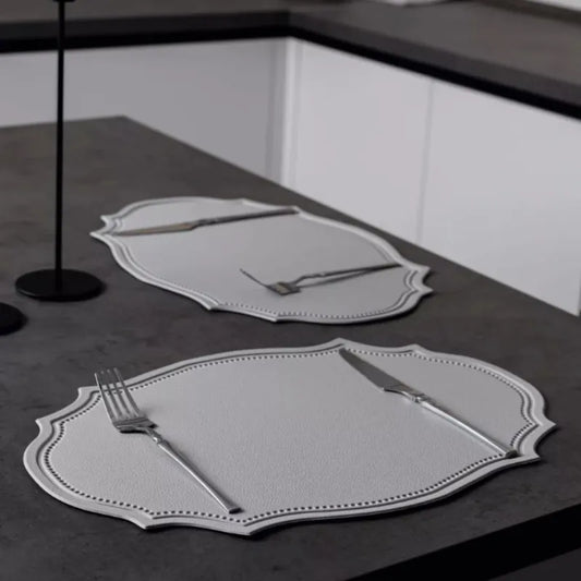 1/4/6PCS Shaped PU Placemat Set Faux Leather Kitchen Dining Table Pad Luxury Black Cream Grey Place Mat Tableware Cafe Pad 식탁매트
