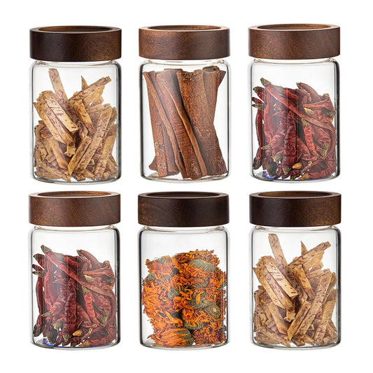 Glass Food Storage Jars with Screw Airtight Seal Acacia Wood Lids,Spice Jars with Lids, Organization for Jars Bottles Containers
