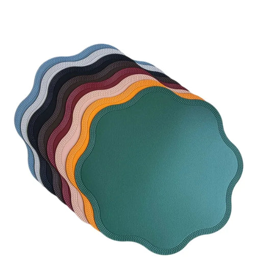 Inyahome Set of 1/4/6 Flower Shaped Waterproof Placemats for Dining Table PU Washable Table Mats Christmas Kitchen Accessories