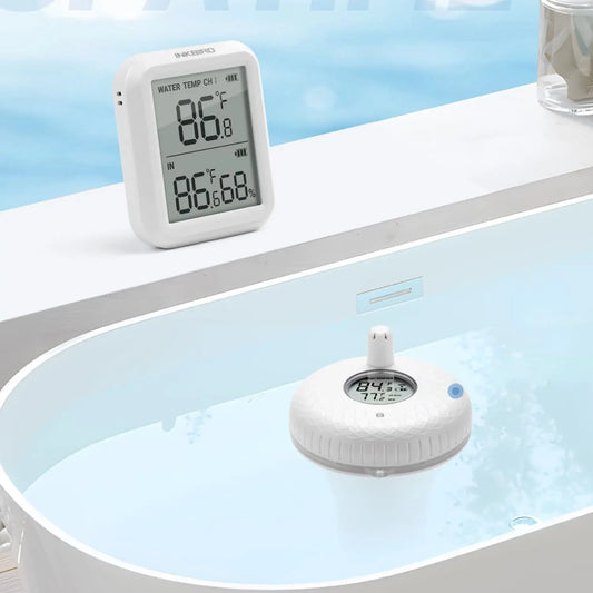 INKBIRD Wireless Pool Thermometer Set Floating Pool Thermometer with Indoor Temp Humidity Monitor for Hot Spring,Small Pond