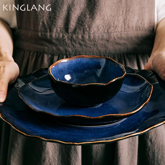 KINGLANG Nordic Ceramic Plate and Bowl Food Dish Plate Pottery Irregular Dish Salad Plate Dinnerware