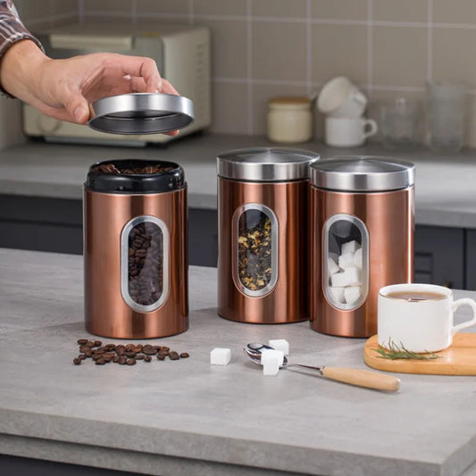 Kitchen Visual Window Storage Jar Coffee Bean Sugar Tea Storage Food Grade Silver Gray Stainless Steel Sealed Jar