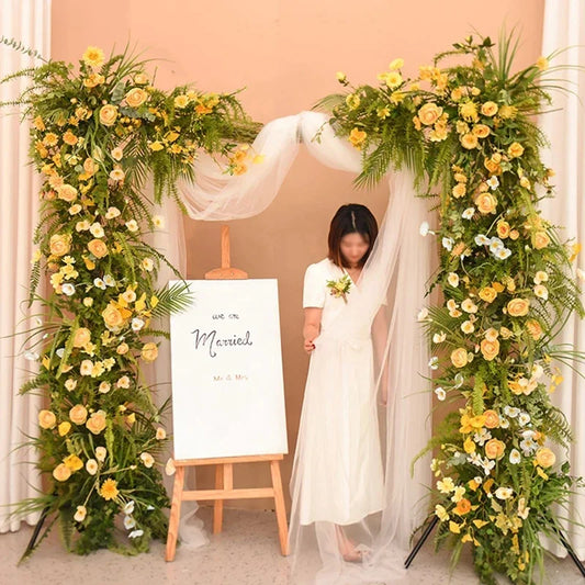 Luxury yellow Red Wedding Arch Backdrop Decor Artificial Hang Flower Row Arrangement Table Centerpiece Floral Party Stage Props