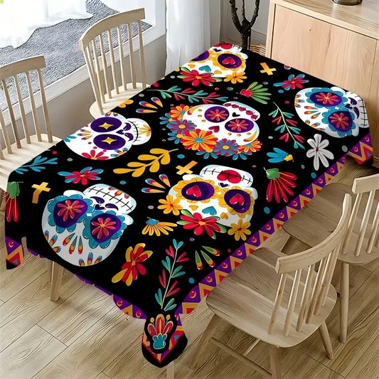 Mexico Day of The Dead Rectangle Tablecloth Mexican Party Decor Colorful Skulls Floral Table Cloths Kitchen Dining Table Decor