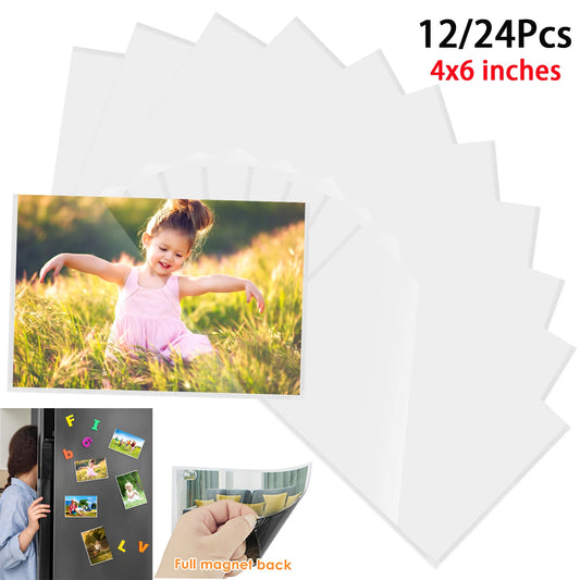 12/24Pcs Magnetic Picture Frames 4x6 Inch Photo Pocket with White Border PVC Photo Frame Magnetic Sign Holder for Refrigerator