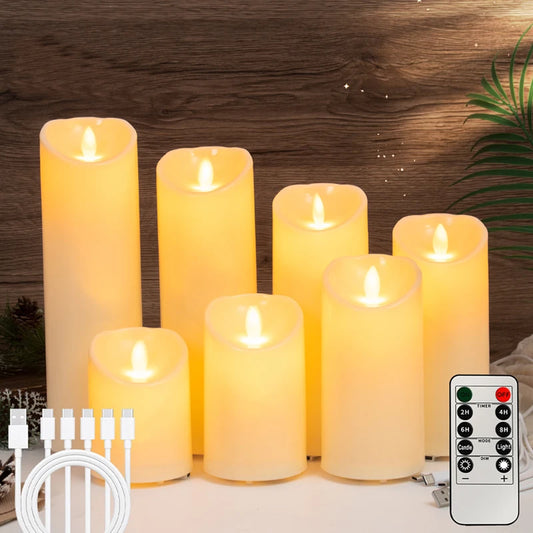 Remote LED Pillar Candle USB-C Rechargeable Atmosphere Light & Timer For Wedding Party Yellow LED Bedside Night Lamp Tealight