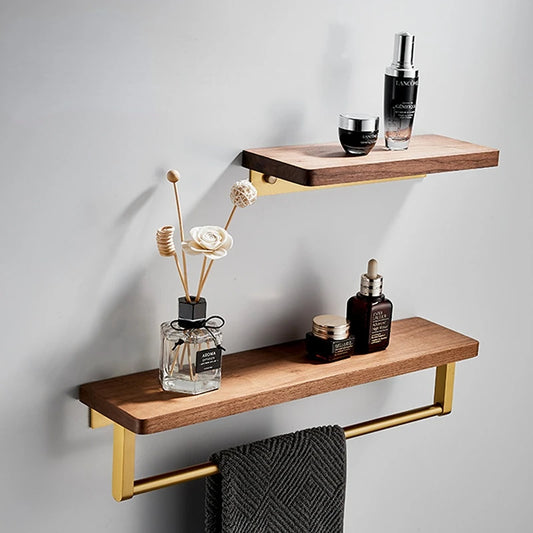 Bathroom Walnut Wooden Storage Shelf Mirror Wall Storage Shelf Wall-mounted One-Piece Drill-Free Daily Towel Organizer Shelf