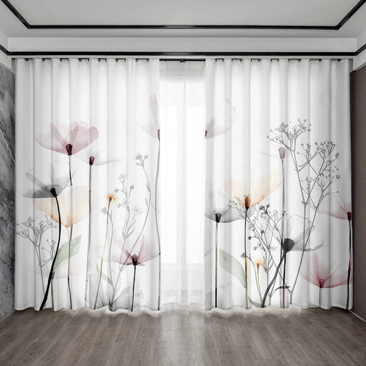 2PC Home Decoration Curtains, Various Flowers With Pole Pocket Curtains, Suitable For My Coffee Shop, Living Room, Study Farm