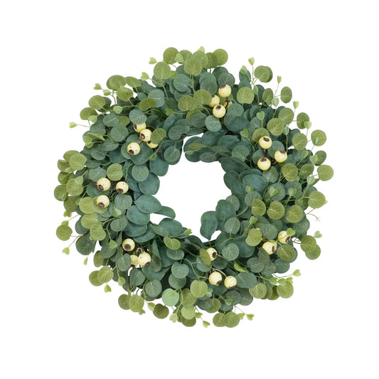 Christmas Candlestick Wreath Artificial Berry Garland Candle Ring Xmas Table Decoration Green Leaves Wreath for Candle Holder