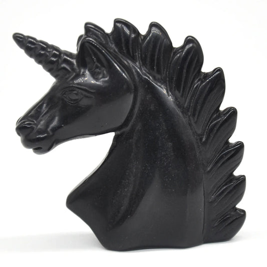 2" Unicorn Statue Natural Black Obsidian Stone Carved Home Decoration Healing Crystal Reiki Figurine Spiritual Gemstone Omament