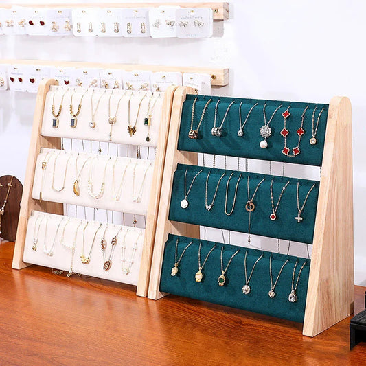 2-Layer Wooden Jewelry Display Stand – Necklace & Pendant Organizer with Velvet Mat | Naturalbuilthome