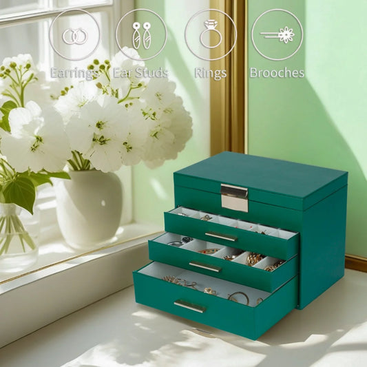 Large 4-Layer Jewelry Box – Multi-Compartment Storage Case for Rings, Necklaces & Earrings | Naturalbuilthome