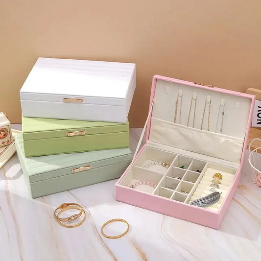 Double-Layer Jewelry Box – Elegant PU Leather & Velvet Organizer for Rings, Earrings, Necklaces | NaturalBuiltHome