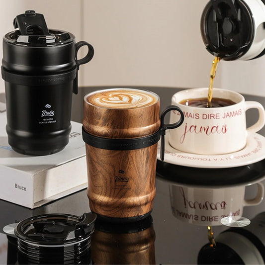Wood Grain Stainless Steel Insulated Coffee Cup – 280ml/500ml Portable Travel Mug | NaturalBuiltHome