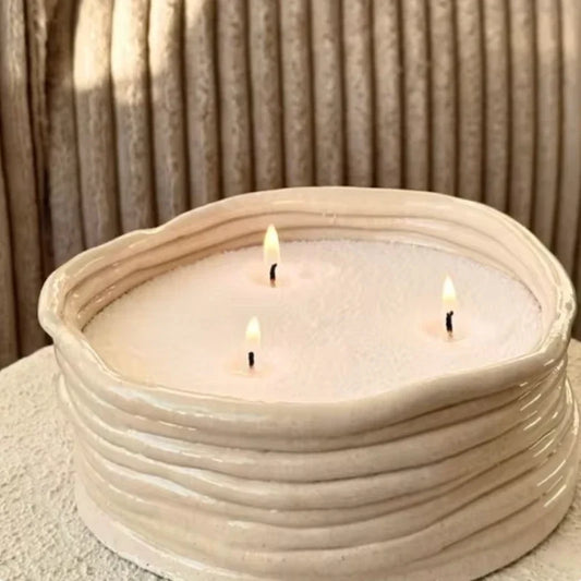 Ceramic Soy Wax Candle Minimalist Set - Smokeless Flameless Aesthetic Candles for Bedroom Living Room, Luxury Home Decor