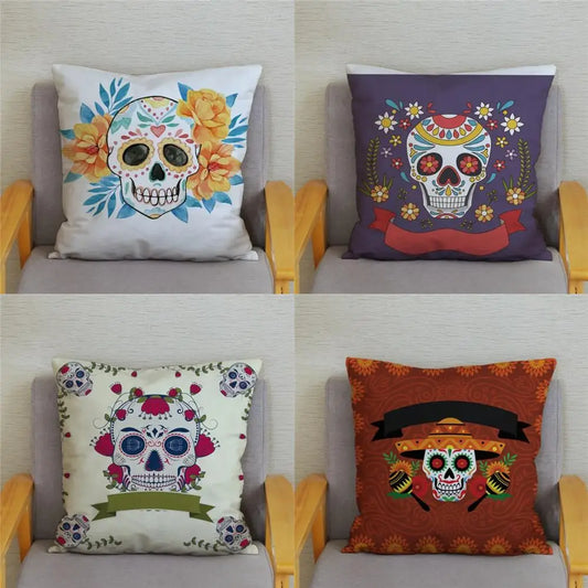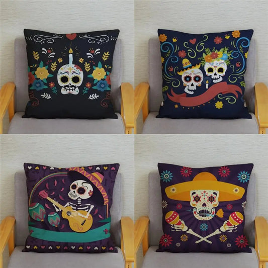 Home Decor Colorful Day Of The Dead Skull Pillows Pattern Cushion Cover Suitable For Sofa Bedroom Car Pillow Cover