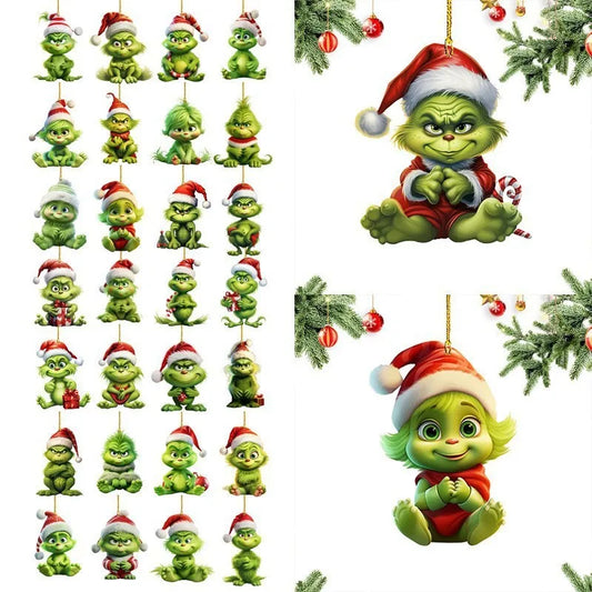12pcs Whimsical Green Christmas Tree Ornaments - Acrylic Wooden Hanging Decorations For Holiday & Thanksgiving Home Decor