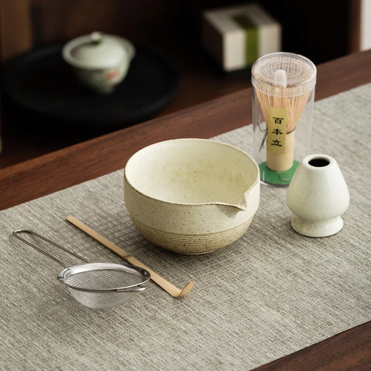 Japanese Bamboo Matcha Whisk Set - Zen Tea Ceremony Tools with Coarse Clay Whisk & Bowl, Traditional Gift for Tea Lovers
