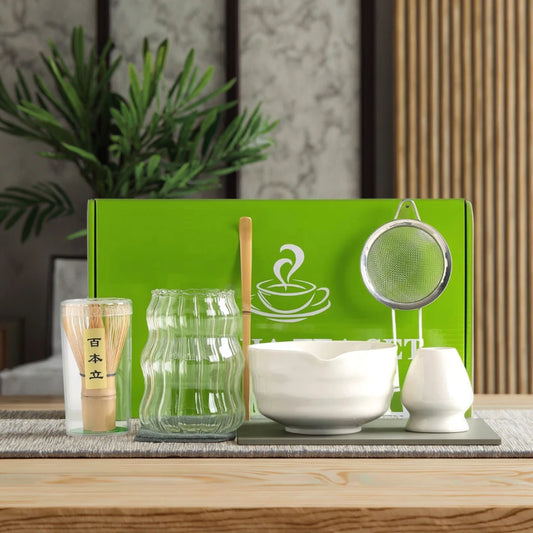BespritGift New Arrival Matcha Set High Quality Glass Matcha Tea Set Bowl Whisk Stand Scoop with Gift Set Box for Tea Ceremonies