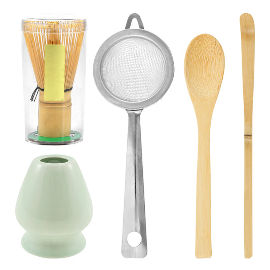 5Pcs Matcha Tea Making Tool Set Bamboo Matcha Whisk Set with Whisk Holder Spoon Scoop and Sifter for Tea Lovers