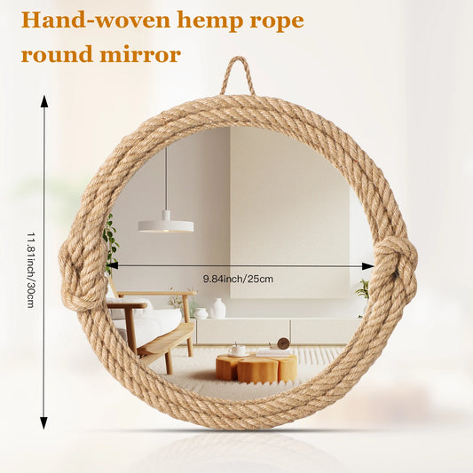 1Pc Willow Weaving Wall-mounted Mirror Home Decorative Makeup Mirror Khaki