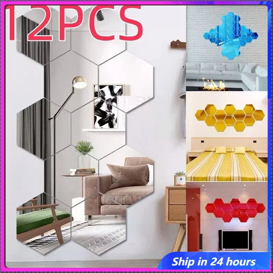 12Pcs Hexagon Acrylic Mirror Wall Stickers Home Decor DIY Removable Mirror Sticker Living-Room Decal Art Ornaments For mirror