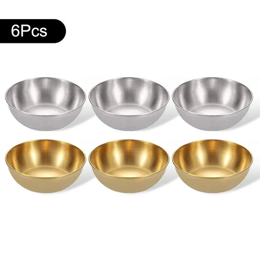 4pcs 2pcs Stainless Steel Golden Sauce Dishes Appetizer Seasoning Serving Dishes Sets Tray Spice Plates Kitchen Tableware