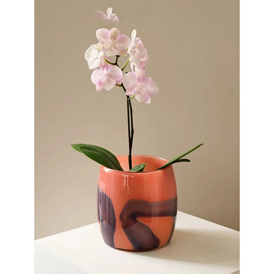 New Year Red Purple Marbled Large Mouth Butterfly Orchid Glass Vase Desktop Decor Home Soft Furnishing