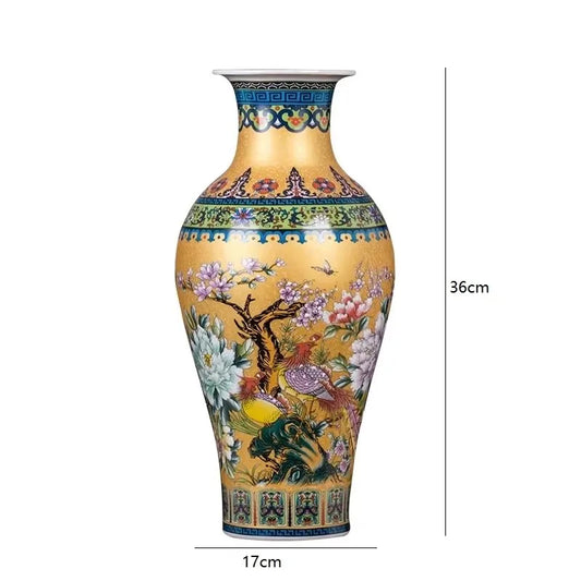 36cm/Golden Jingdezhen ceramics, Chinese style enamel colored vase decorations, home decor, living room, antique rack, vase inse