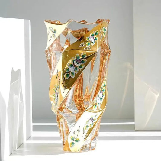 Crystal Glass Vase Gold Painted Enamel European Style Decoration Housewarming Gift