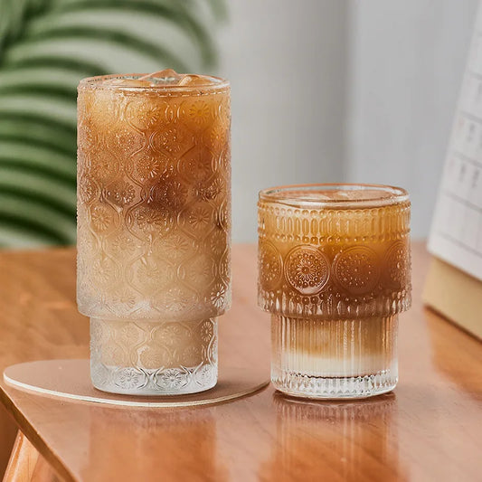 2pcs Cocktail Drinking Glasses Ins Style Glass Coffee Cup Retro Vertical Stripes Home Aesthetic Drinking Cup Beverage Latte Cups