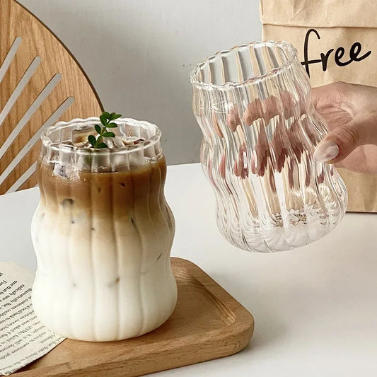 Coffee Mug Transparant Drinking Glass Cup Creative Wave Shape Iced Tumbler Cup Juice Milk Tea Mug Drinkware Water Glasses Ripple
