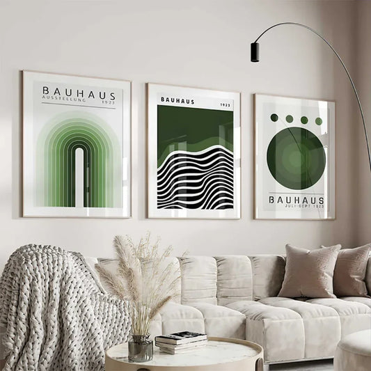 Sage Green Bauhaus Abstract Geometric Exhibition Wall Art Canvas Painting Nordic Posters Prints Wall Pictures Living Room Decor