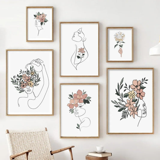 Abstract Woman Flower Minimalist Lines Modern Fashion Art Posters Prints Canvas Wall Decoration Home Paintings For Living Room