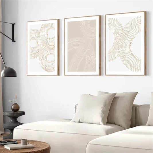 Boho Beige Geometry Abstract Line Wall Art Canvas Print Minimalist Bohemia Poster Modern Wall Painting Picture Living Room Decor