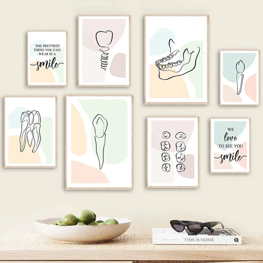 Teeth Abstract Line Oral Health Dentist Wall Art Canvas Painting Nordic Posters And Prints Wall Pictures For Dental Clinic Decor