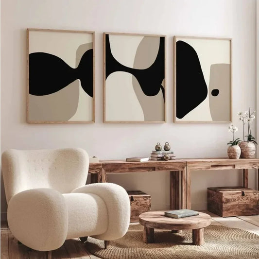 Modern Abstract Geometric Canvas Art Prints Set of 3, Art Deco Minimalist Beige Brown Wall Art Poster, Spring Summer Decor for B