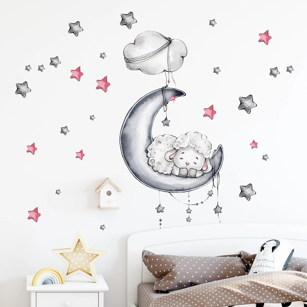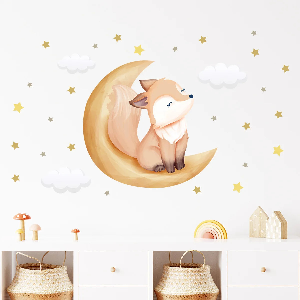 1Pc Cartoon Animal Star Moon Cat Rabbit Bear Wall Stickers for Room Decoration Living Room Decor for House