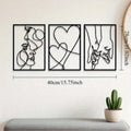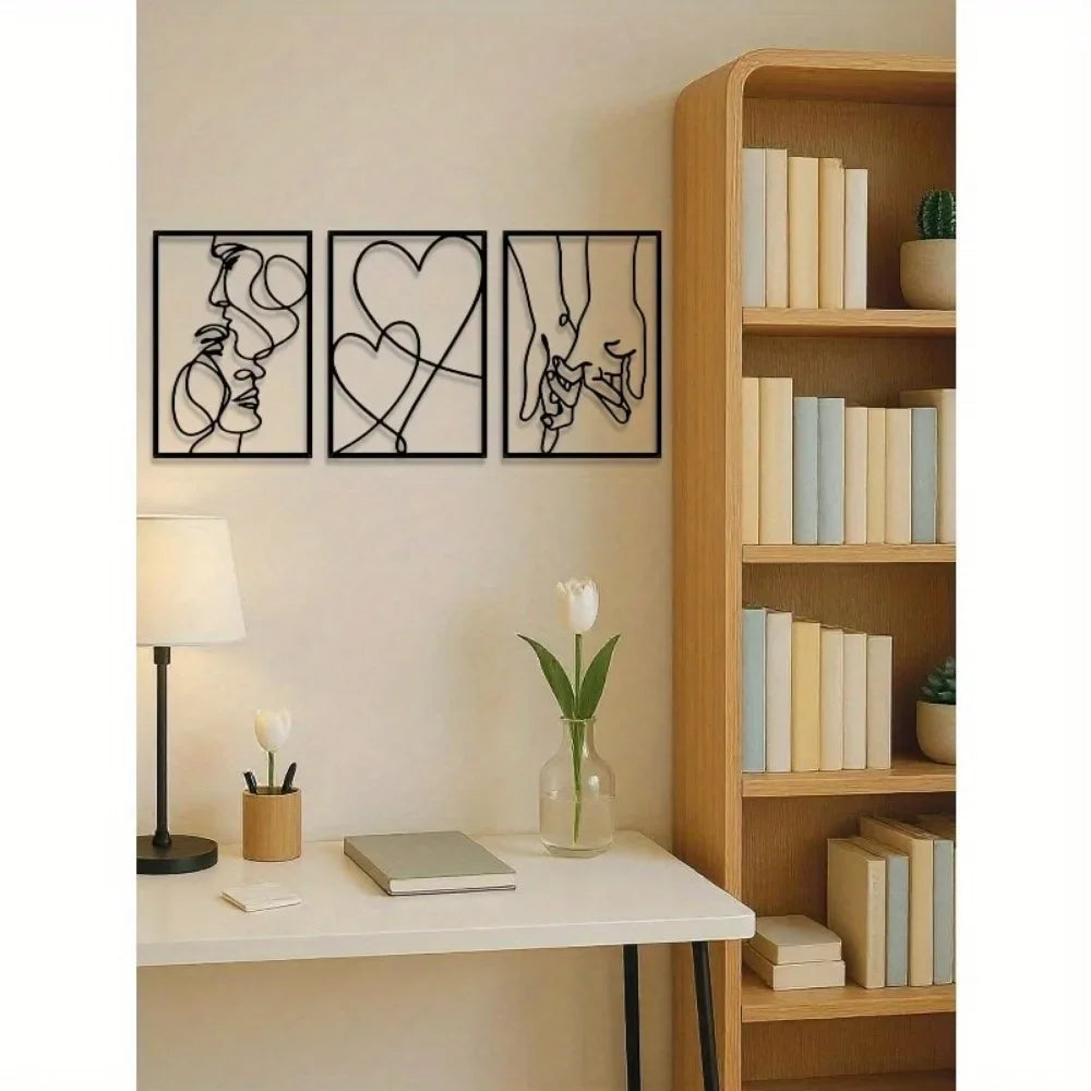 3-Piece Romantic Metal Wall Art Set: Minimalist Couple Silhouettes, Love & Kiss Line Drawings.