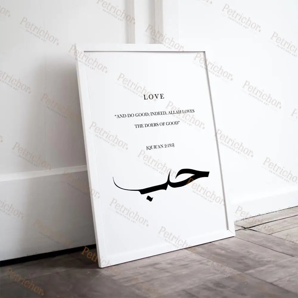 Abr Shukr Hubb, Arabic Calligraphy Islamic Quotes Wall Art Prints Canvas Painting Poster Pictures For Living Room Home Decor