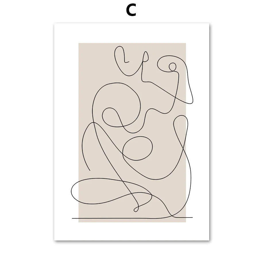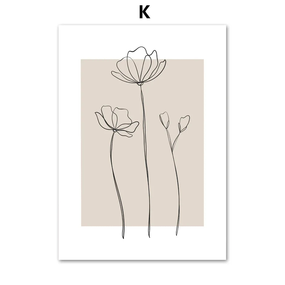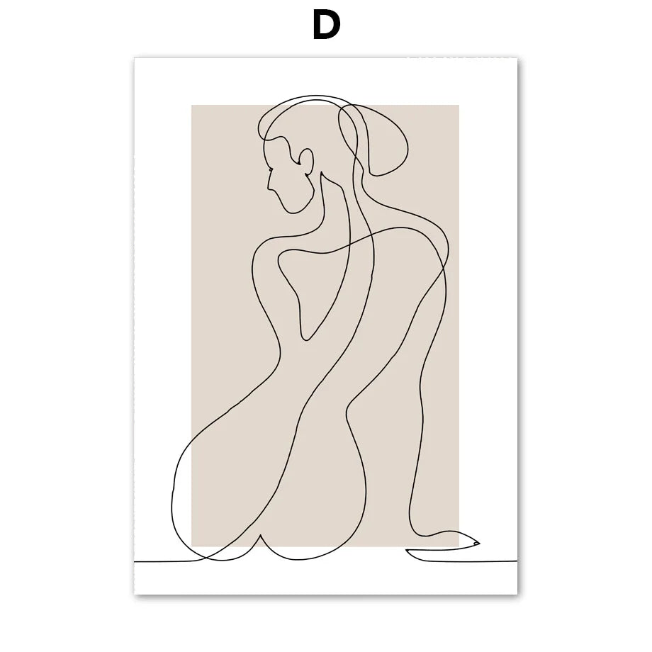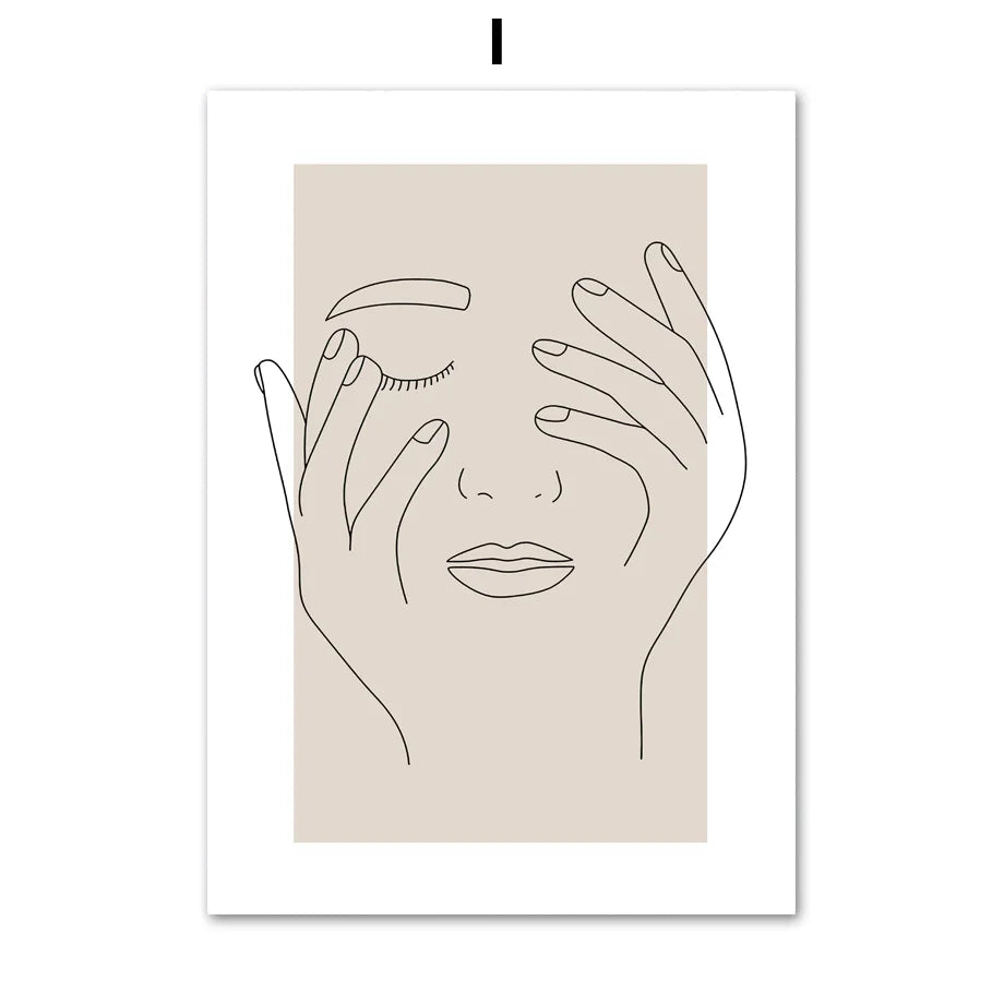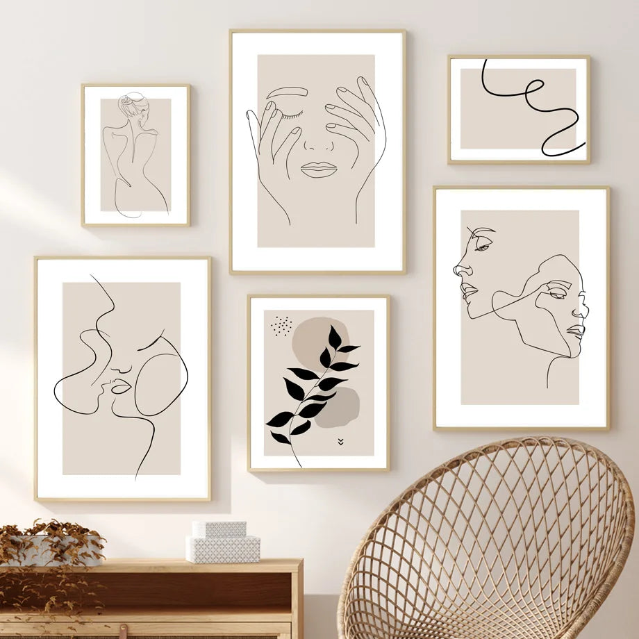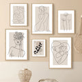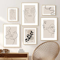 Abstract Line Girl Flower Leaf Wall Art Beige Nordic Posters And Prints Wall Pictures for Living Room Decoration Wall Painting