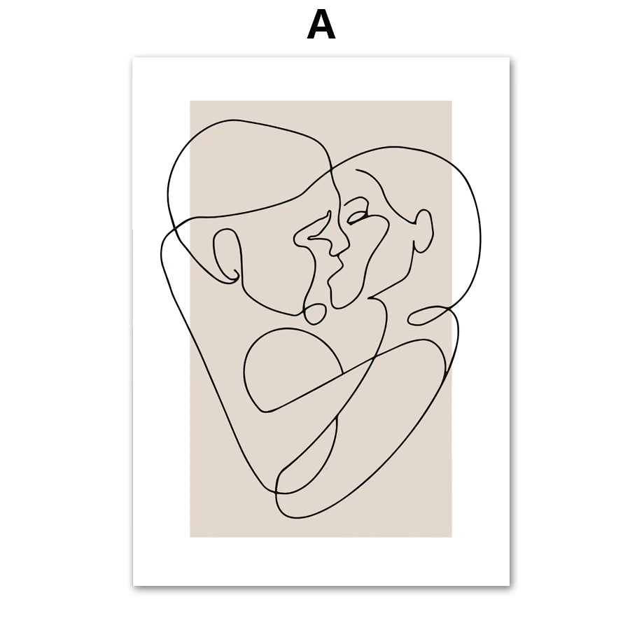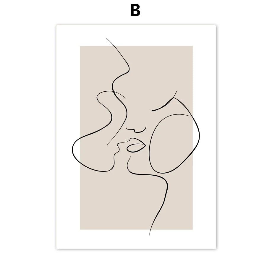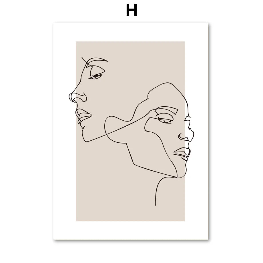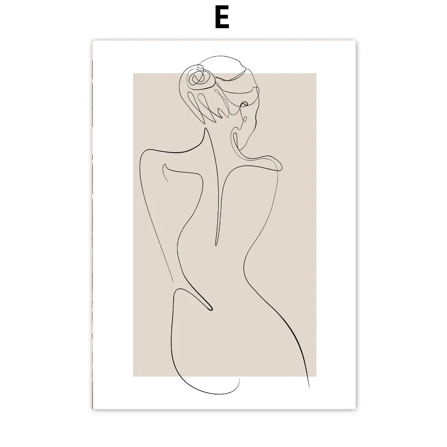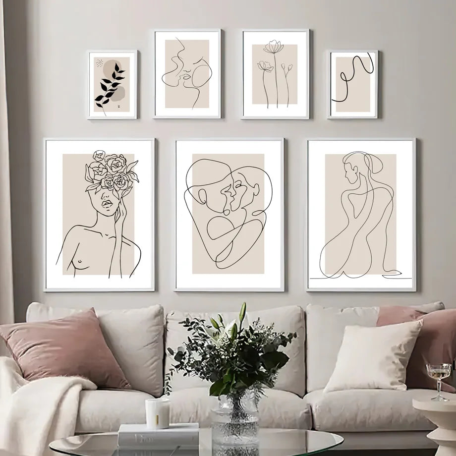 Abstract Line Girl Flower Leaf Wall Art Beige Nordic Posters And Prints Wall Pictures for Living Room Decoration Wall Painting