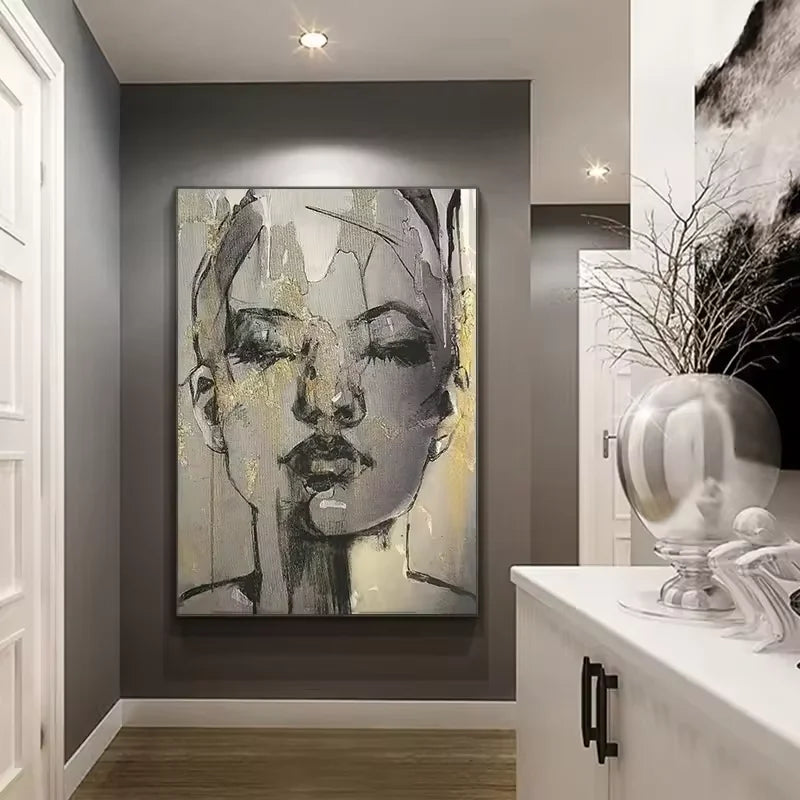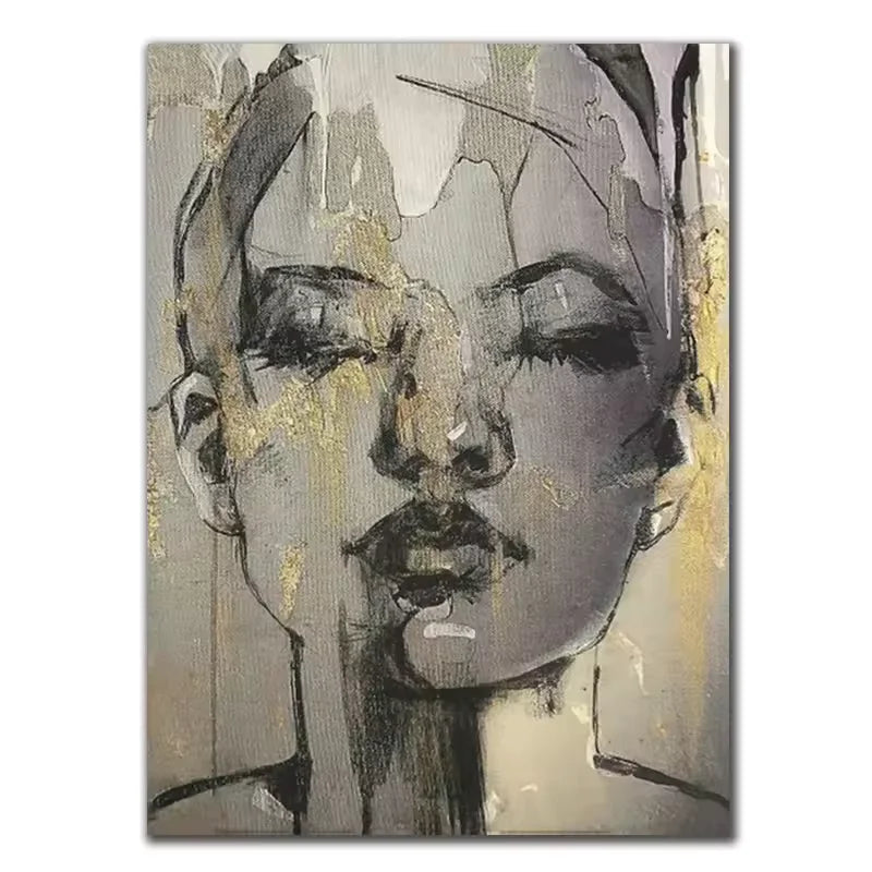 Black and golden Face Women Canvas Paintings Modern women Portrait Posters and Print Wall Art Picture for Living Room Wall Decor