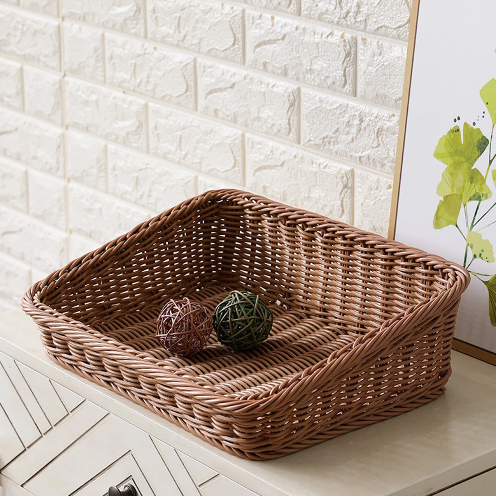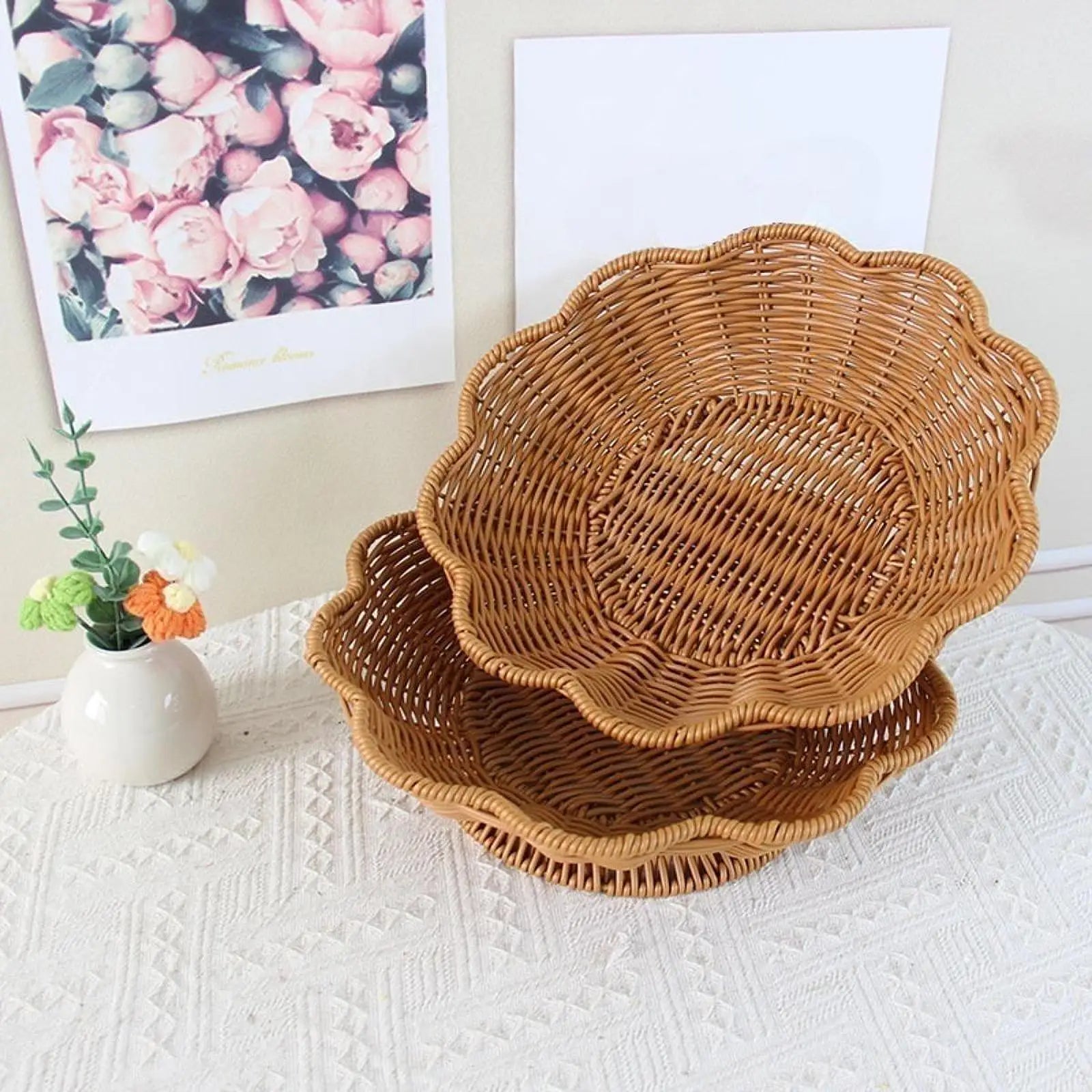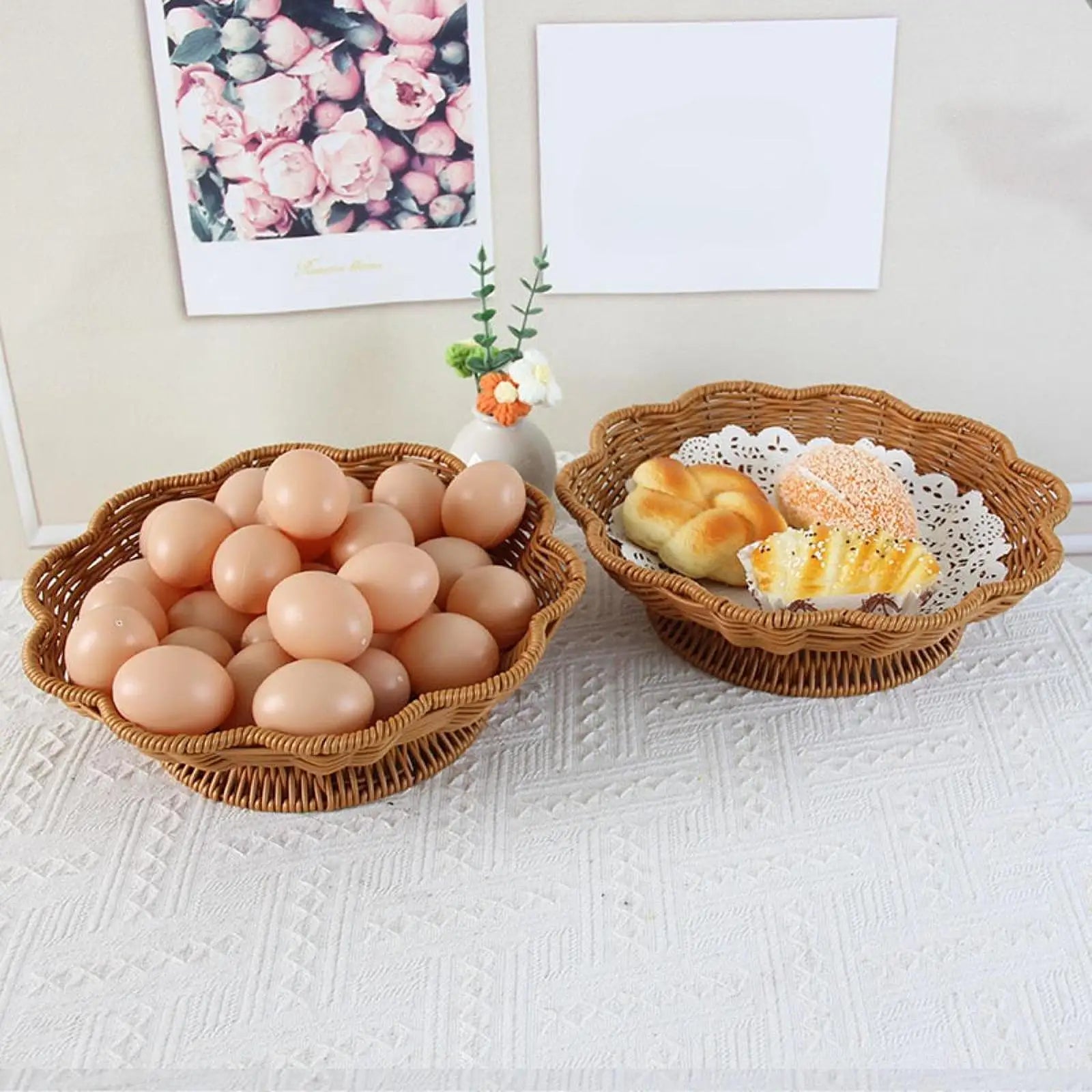 Bread Basket Imitation Rattan Basket Food Fruit Storage Woven Fruit Basket Organizer for Table Picnic Outdoor Table Organizer