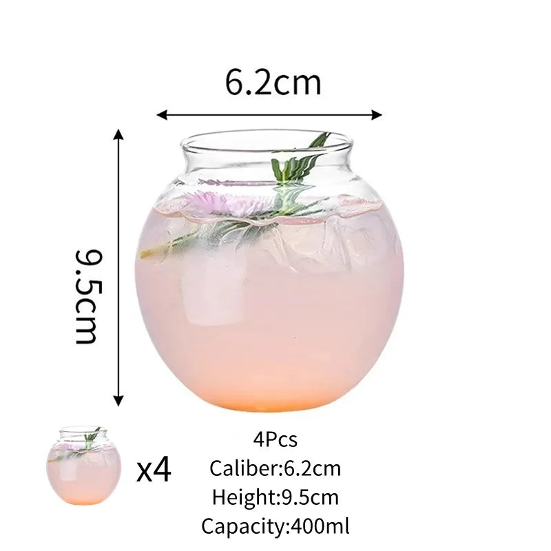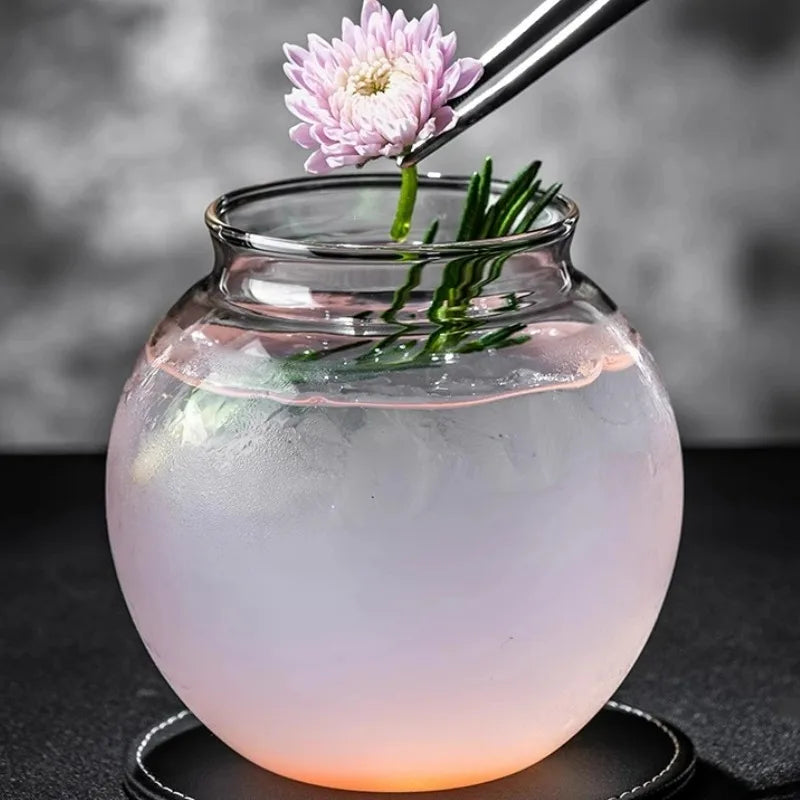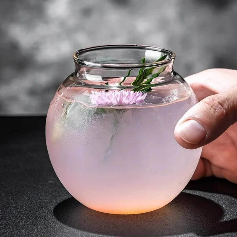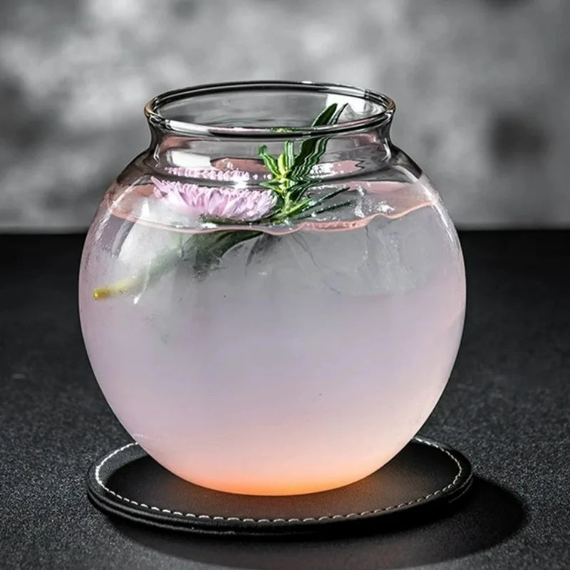 Creative Cocktail Glasses Cups Flat Bottom Round Ball Cup Transparent Cold Drink Glass Moon-shaped Juice Cup Bar Accessories
